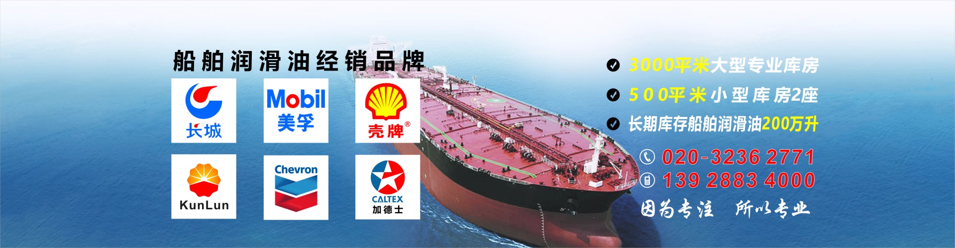 廣州市誠(chéng)專(zhuān)潤(rùn)滑油有限公司是中石化長(zhǎng)城潤(rùn)滑油船用油專(zhuān)業(yè)代理商,從事船舶潤(rùn)滑油銷(xiāo)售、運(yùn)輸、加注服務(wù),是專(zhuān)業(yè)船舶潤(rùn)滑油服務(wù)平臺(tái)。