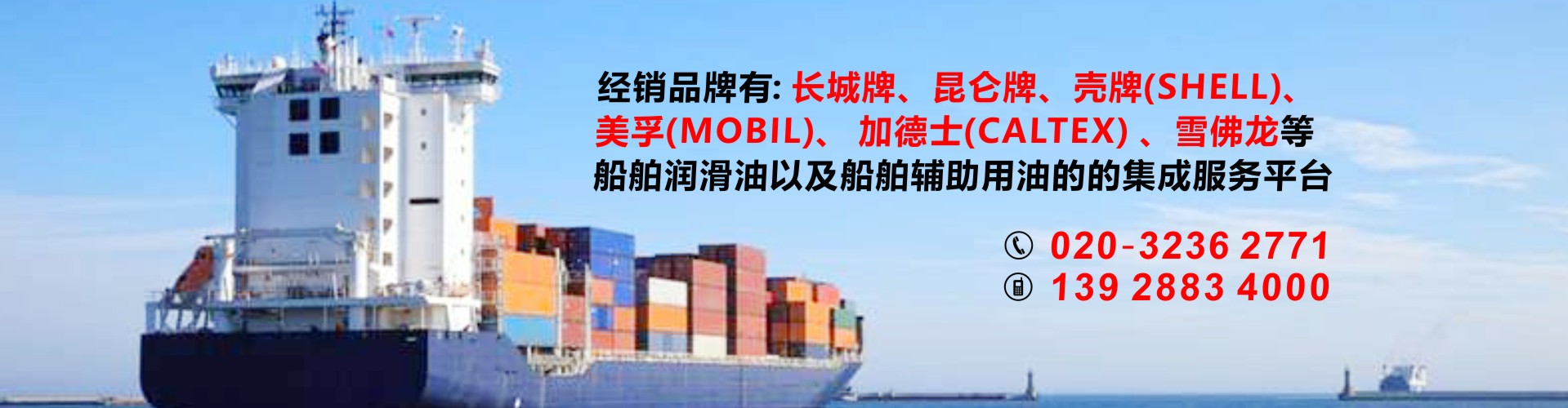 公司代理中石化長(zhǎng)城潤(rùn)滑油以及中石化國(guó)際品牌SINOPEC潤(rùn)滑油,經(jīng)銷(xiāo)品牌有昆侖牌、殼牌(SHELL)、美孚(MOBIL)、加德士(CALTEX)、雪佛龍(CHEVRON)是船舶潤(rùn)滑油以及船舶輔助用油的的集成服務(wù)平臺(tái),也可按照船東要求提供船舶消防救生用品、勞保用品、五金燈具及甲板用品等船舶配套產(chǎn)品。